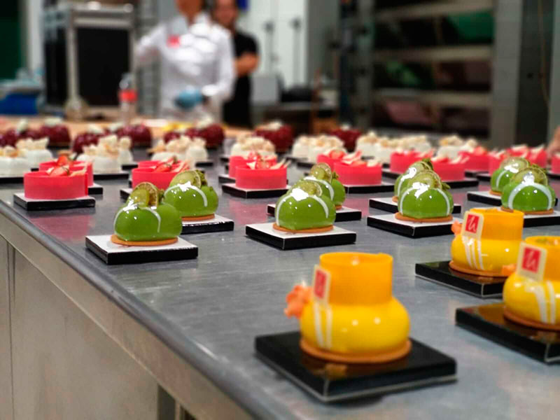 Luca Montersino, reconocido en 2015 como el Italiano del Mundo de Pastelería saludable, impartió una Masterclass sobre ‘pequeños pasteles elegantes’, jugando con el equilibrio de colores y sabores, y prestando atención a las parámetros técnicos que afectan a las texturas, principalmente a la agitación y temperatura.